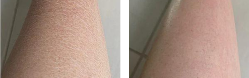 ✔ Smooths bumps and reduces strawberry skin on arms and thighs
